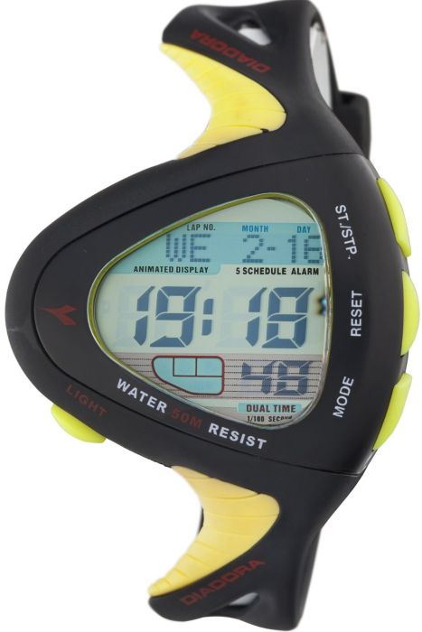 Com um divertimento, forma angular, a Diadora Preto e Amarelo Alça Digital Sports Watch oferece uma visão única de um relógio de alta qualidade. O mostrador digital negro está situado no brilho luminoso diagonal e funcionalidades.